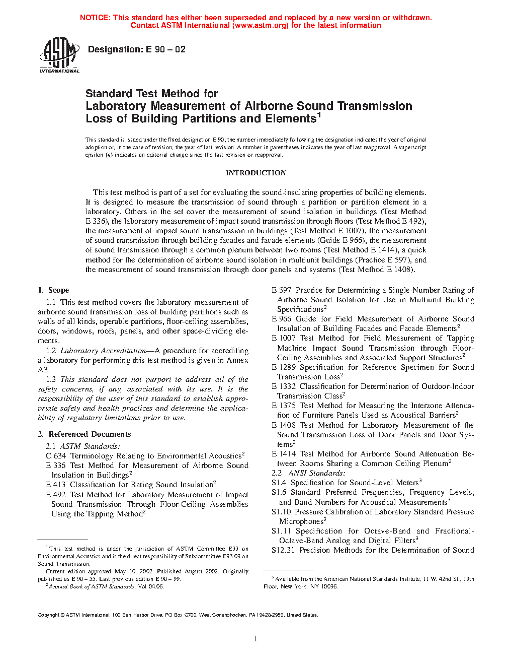 1.2 Laboratories are designed so the test specimen constitutes the primary sound transmission path between the two test rooms and so approximately diffuse sound fields exist in the rooms.