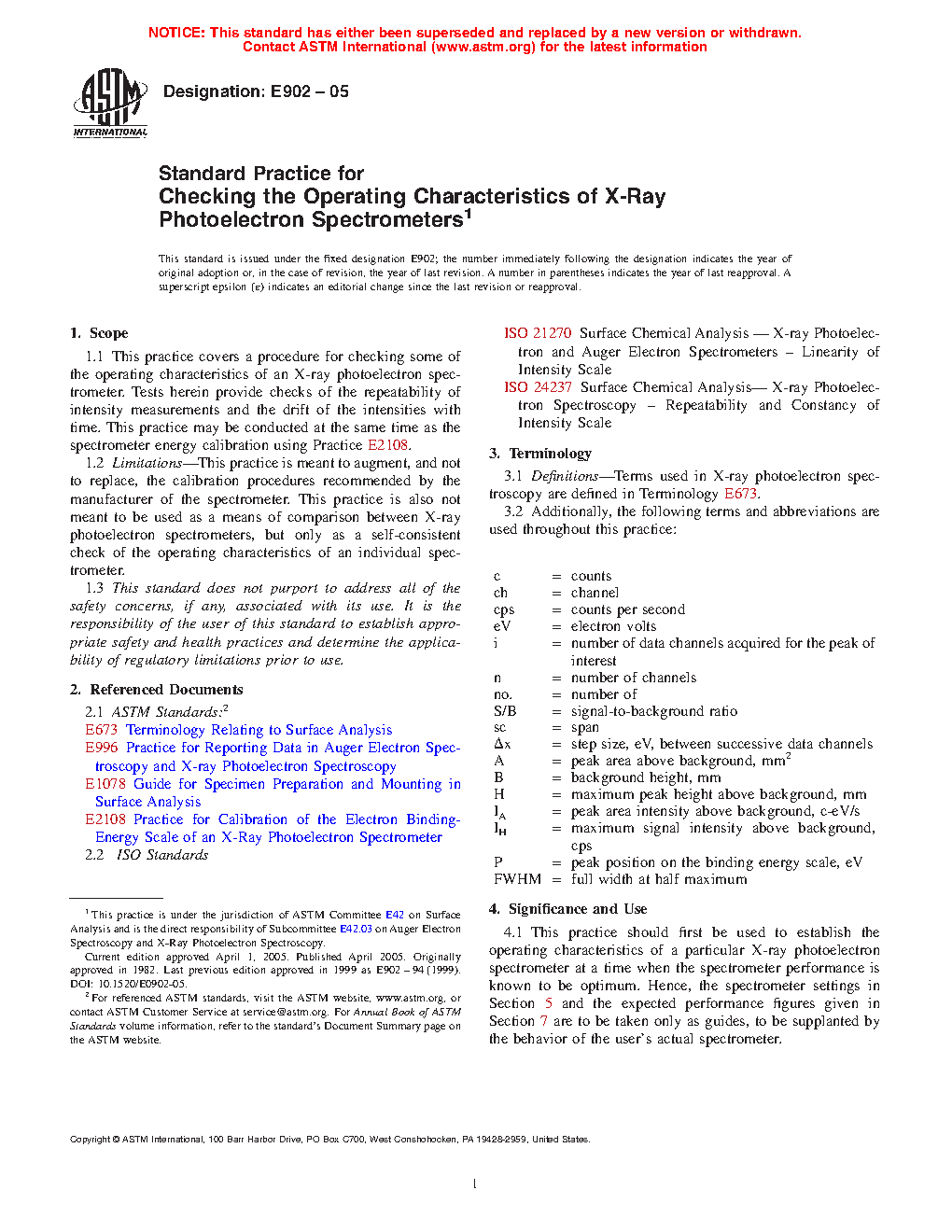1.2 Limitations -This practice is meant to augment, and not to replace, the calibration procedures recommended by the manufacturer of the spectrometer. This practice is also not meant to be used as a means of comparison between X-ray photoelectron spectrometers, but only as a self-consistent check of the operating characteristics of an individual spectrometer.