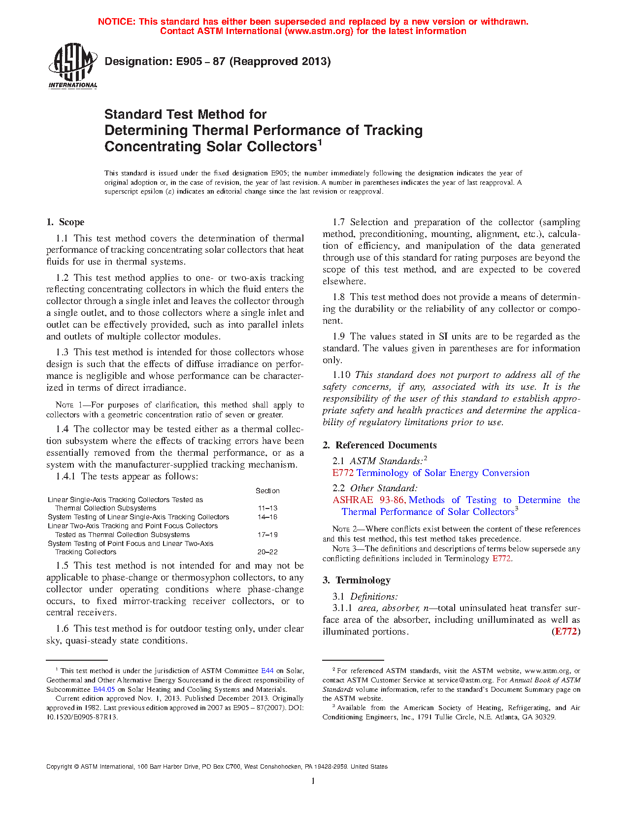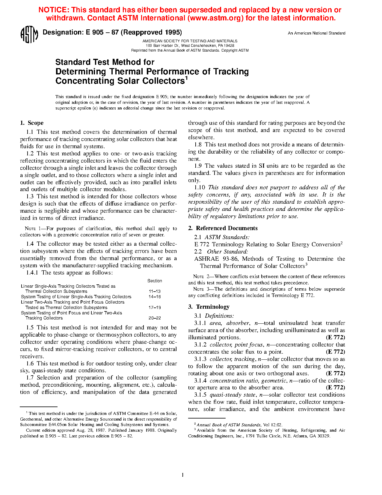 5.4 This test method may be used to evaluate the thermal performance of either (1) a complete system, including the tracking subsystems and the thermal collection subsystem, or (2) the thermal collection subsystem.