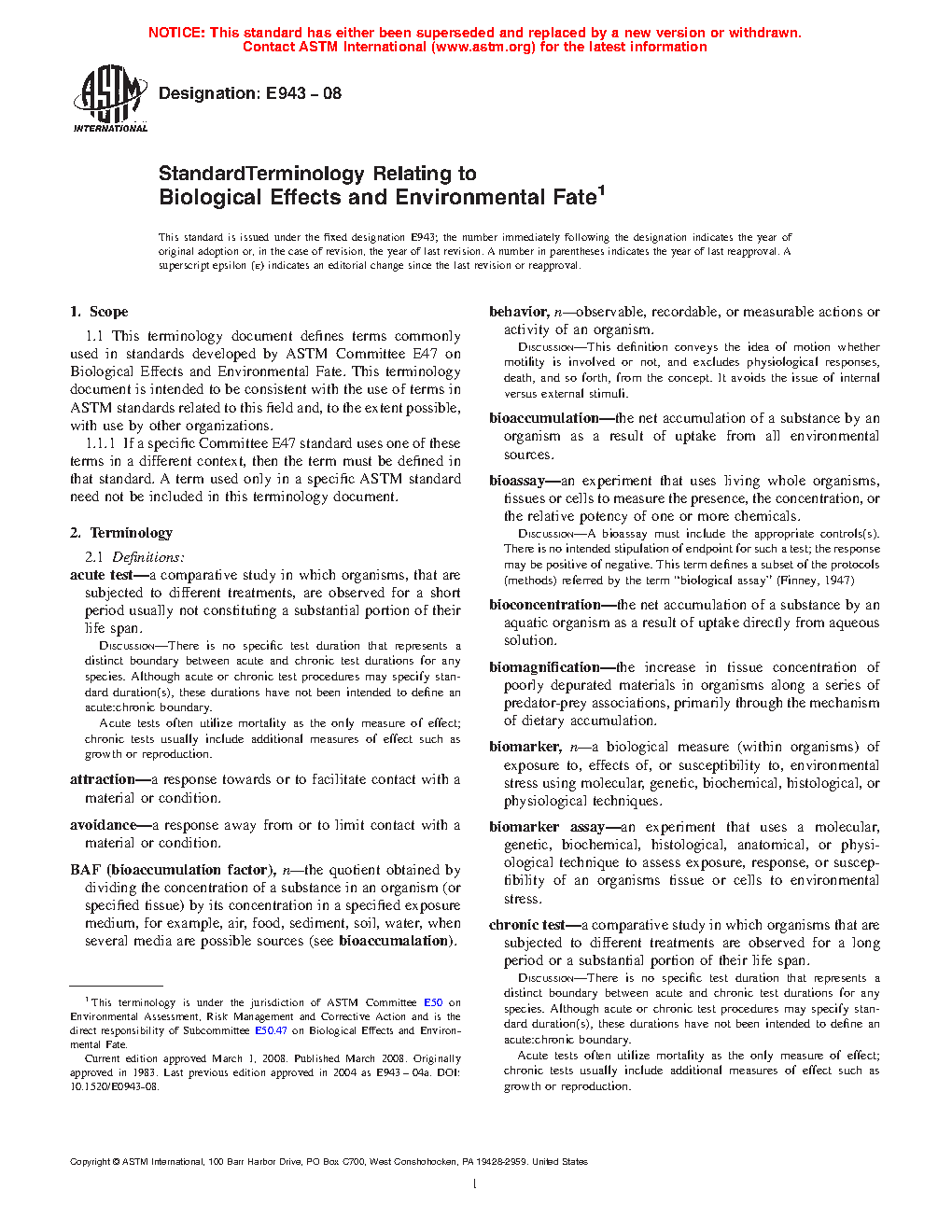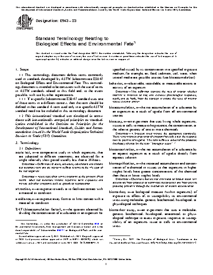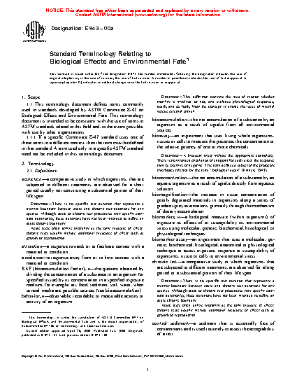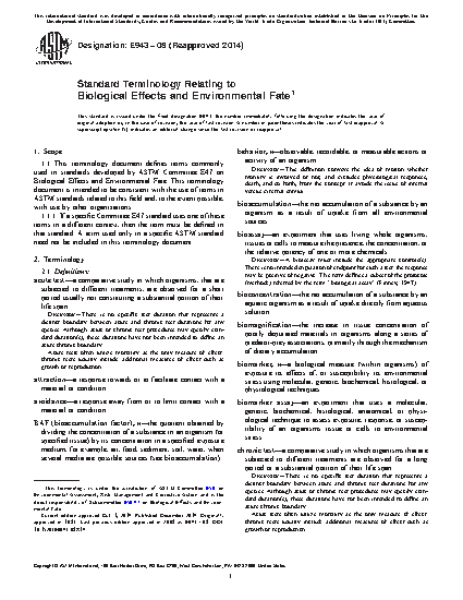 Standard Terminology Relating to Biological Effects and Environmental Fate