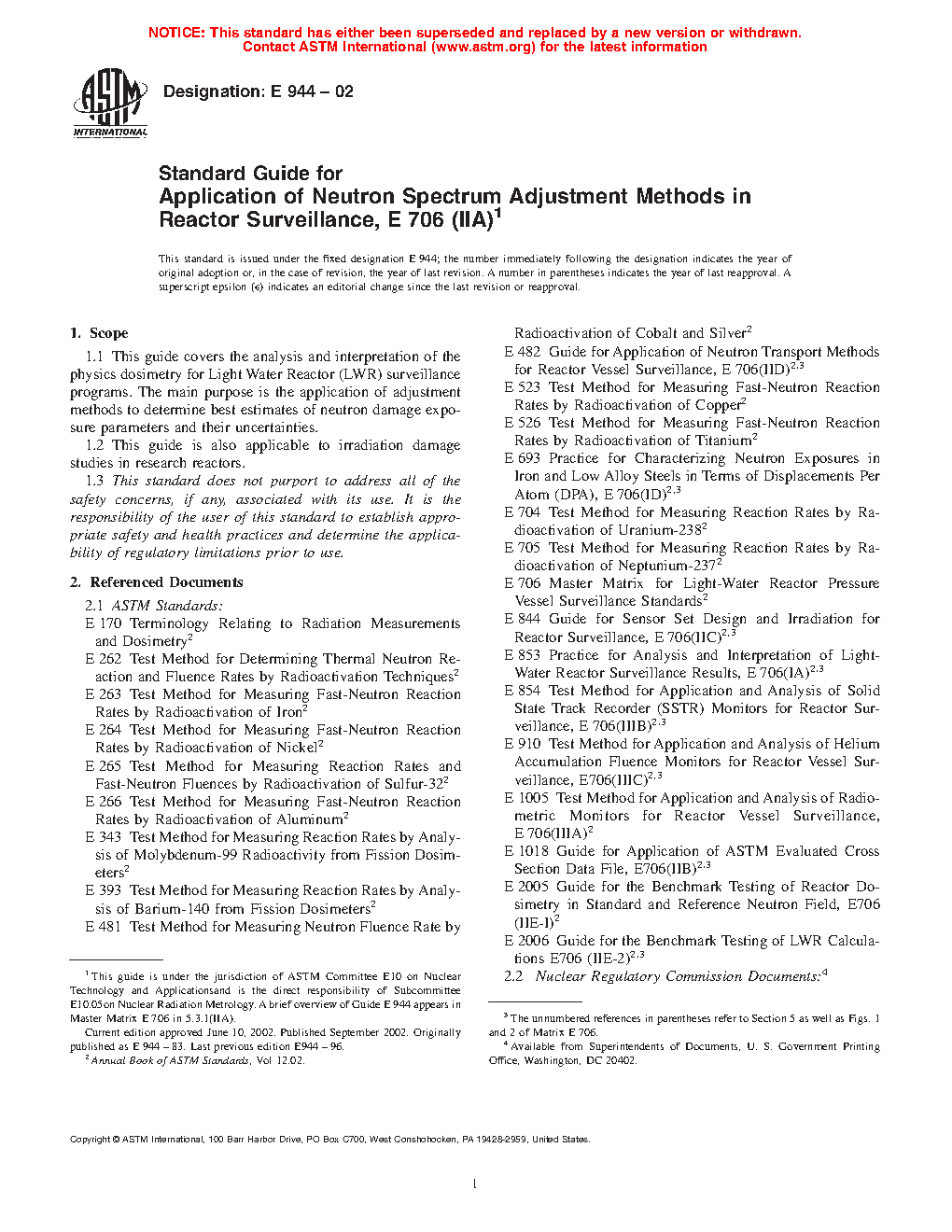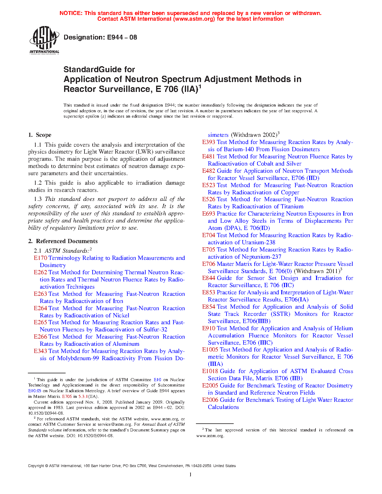 Standard Guide for Application of Neutron Spectrum Adjustment Methods in Reactor Surveillance, E706 (IIA)