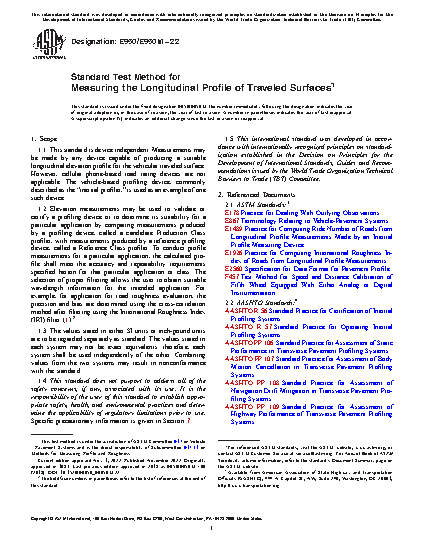 1.2 Elevation measurements may be used to validate or certify a profiling device or to determine its suitability for a particular application by comparing measurements produced by a profiling device, called a candidate Production Class profiler, with measurements produced by a reference profiling device, called a Reference Class profiler. To conduct profile measurements for a particular application, the calculated profile shall meet the accuracy and repeatability requirements specified herein for that particular application or class. The selection of proper filtering allows the user to obtain suitable wavelength information for the intended application. For example, for application for road roughness evaluation, the precision and bias are determined using the cross-correlation method after filtering using the International Roughness Index (IRI) filter (1).2