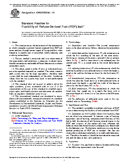 4.1 This standard is for determining the fusibility of ash produced from RDF.
