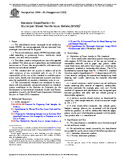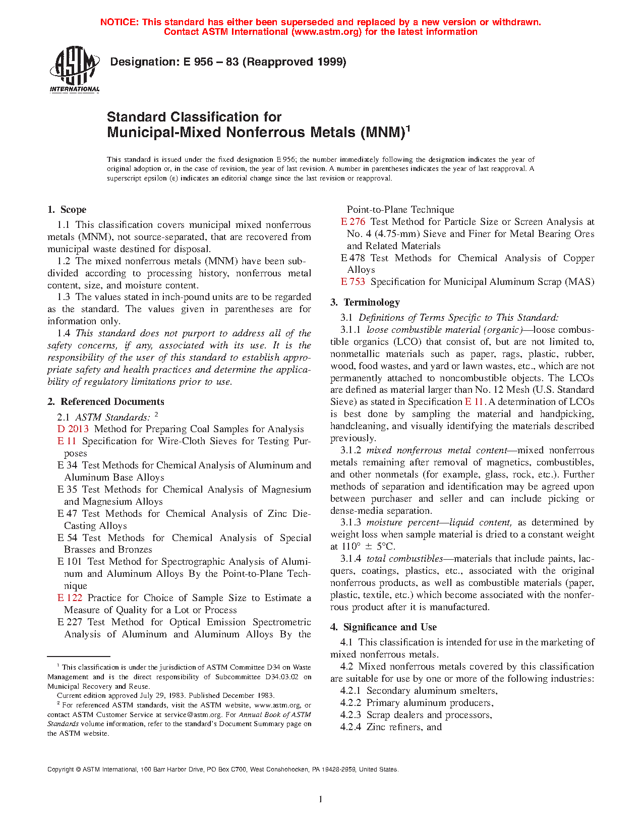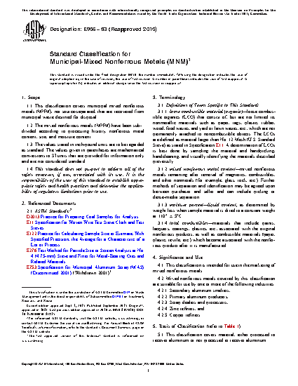 Standard Classification for Municipal Mixed Nonferrous Metals (MNM)