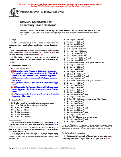 1.1 This specification provides standard dimensional requirements for glass beakers suitable for general laboratory use.