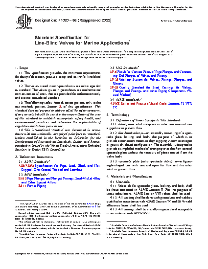 Standard Specification for Line-Blind Valves for Marine Applications
