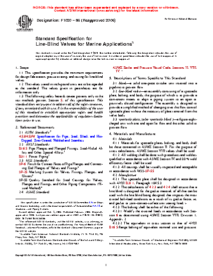 1.1 This specification provides the minimum requirements for design fabrication, pressure rating, and testing for line-blind valves.