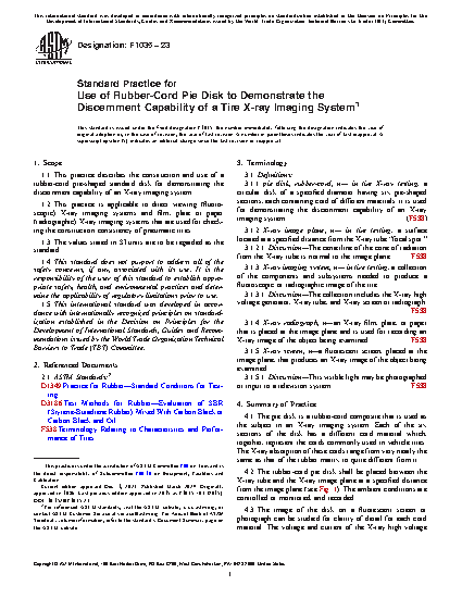 1.1 This practice describes the construction and use of a rubber-cord pie-shaped standard disk for demonstrating the discernment capability of an X-ray imaging system.