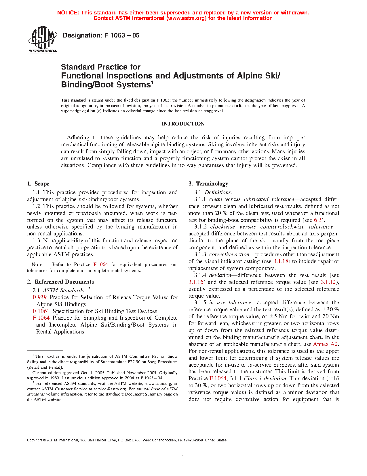 1.1 This practice provides procedures for inspection and adjustment of alpine ski/binding/boot systems.