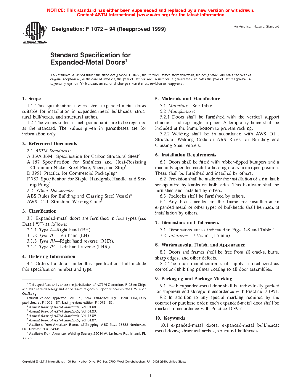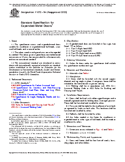1.1 This specification covers steel expanded-metal doors suitable for installation in expanded-metal bulkheads, structural bulkheads, and structural arches.