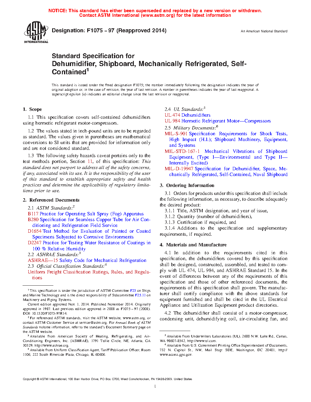 1.1 This specification covers self-contained dehumidifiers using hermetic refrigerant motor-compressors.