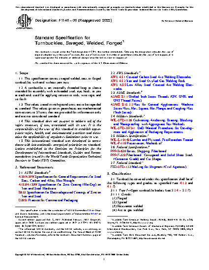 1.1 This specification covers swaged welded, cast, or forged turnbuckles with and without jam nuts.