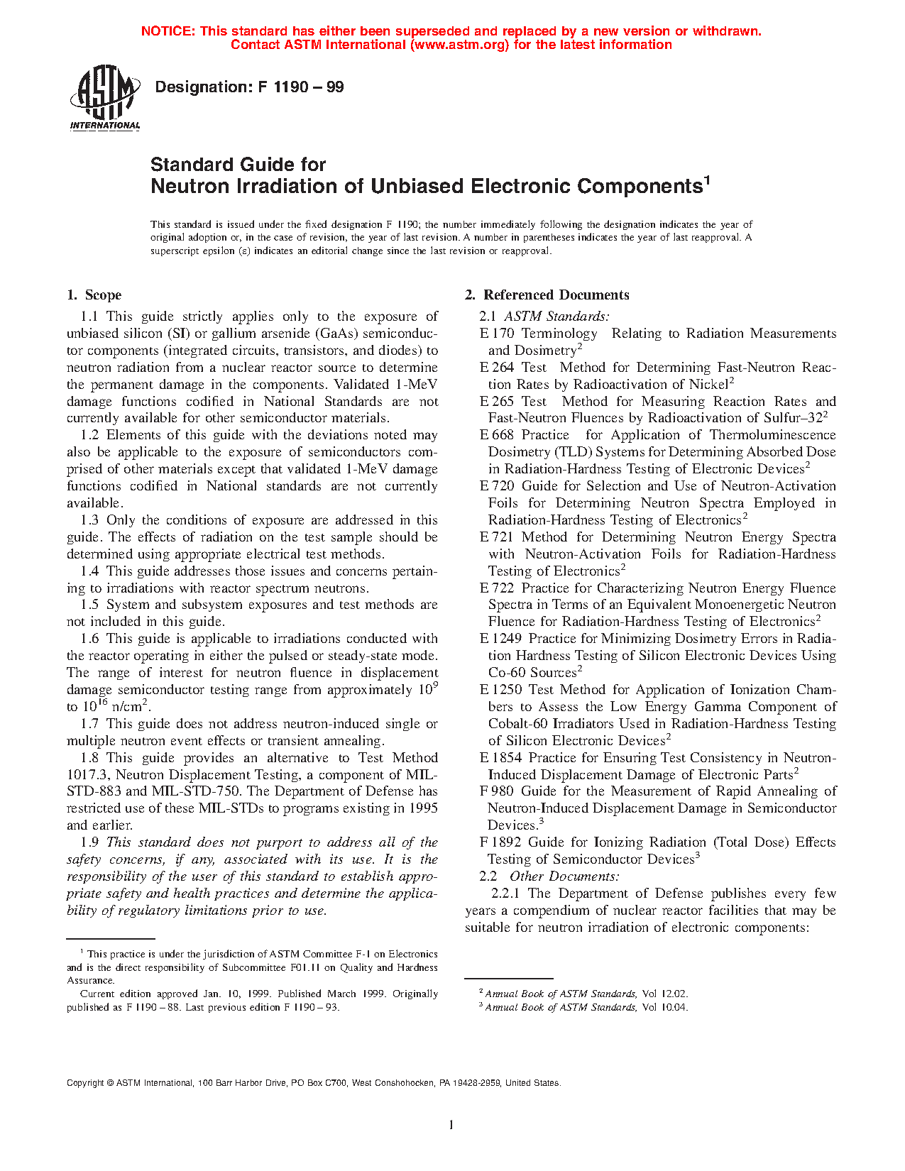 1.1 This practice applies to the exposure of unbiased silicon (Si) or gallium arsenide (GaAs) semiconductor components to neutron radiation from a nuclear reactor source. Only the conditions of exposure are addressed in this practice. The effects of radiation on the test sample should be determined using appropriate electrical test methods.