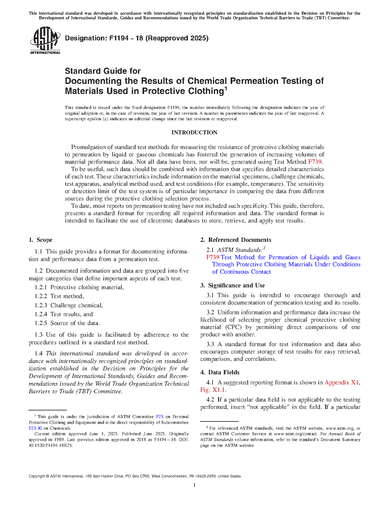 1.4 This international standard was developed in accordance with internationally recognized principles on standardization established in the Decision on Principles for the Development of International Standards, Guides and Recommendations issued by the World Trade Organization Technical Barriers to Trade (TBT) Committee.
