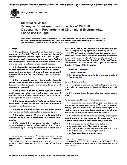 1.3 This is a general guide only. It assumes the oil to be dispersible and the dispersant to be effective, available, applied correctly, and in compliance with relevant government regulations. In the assessment of environmental sensitivity, it is assumed that the dispersant is nonpersistent in the natural environment. Oil, as used in this guide, includes crude oils and refined petroleum products. Differences between individual dispersants or between different oil products are not considered.