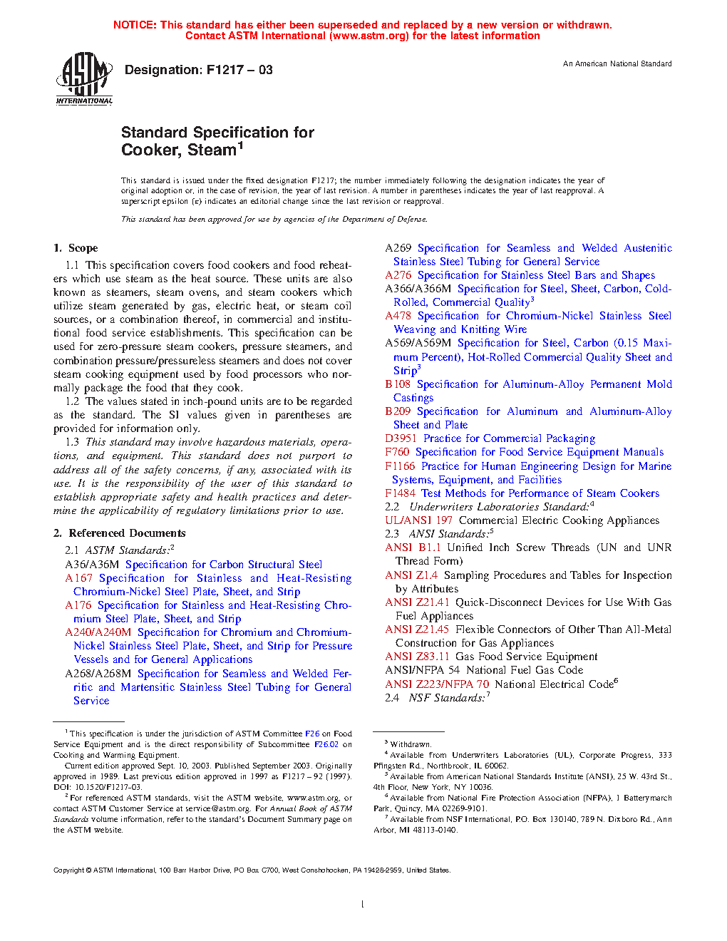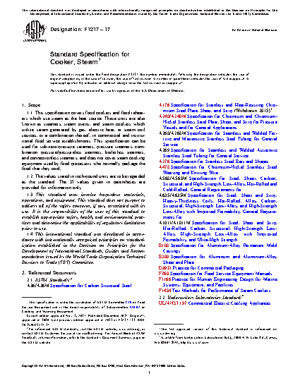 1.1 This specification covers food cookers and food reheaters which use steam as the heat source. These units are also known as steamers, steam ovens, and steam cookers which utilize steam generated by gas, electric heat, or steam coil sources, or a combination thereof, in commercial and institutional food service establishments. This specification can be used for sub-zero-pressure steamers, pressure steamers, combination pressure/pressureless steamers, boilerless steamers, and connectionless steamers, and does not cover steam cooking equipment used by food processors who normally package the food that they cook.