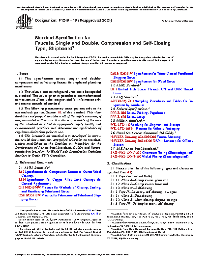 Standard Specification for Faucets, Single and Double, Compression and Self-Closing Type, Shipboard