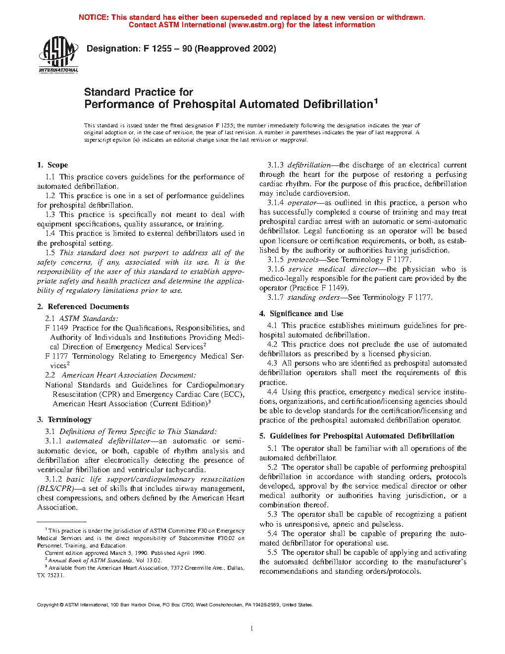 1.2 This practice is one in a set of performance guidelines for prehospital defibrillation.