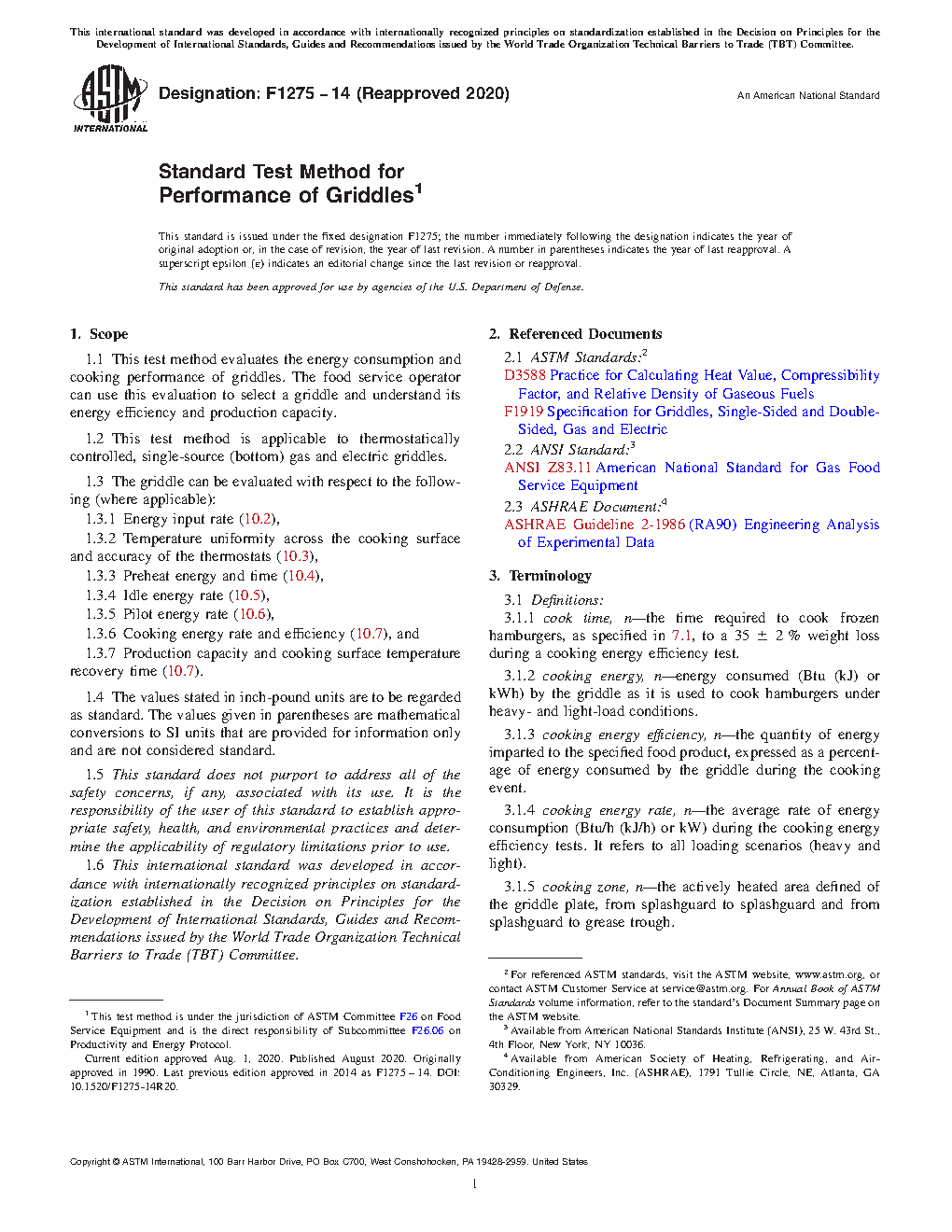 1.2 This test method is applicable to thermostatically controlled, single-source (bottom) gas and electric griddles.