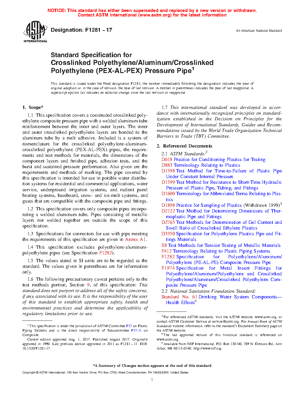 1.2 This specification covers only composite pipes incorporating a welded aluminum tube. Pipes consisting of metallic layers not welded together are outside the scope of this specification.