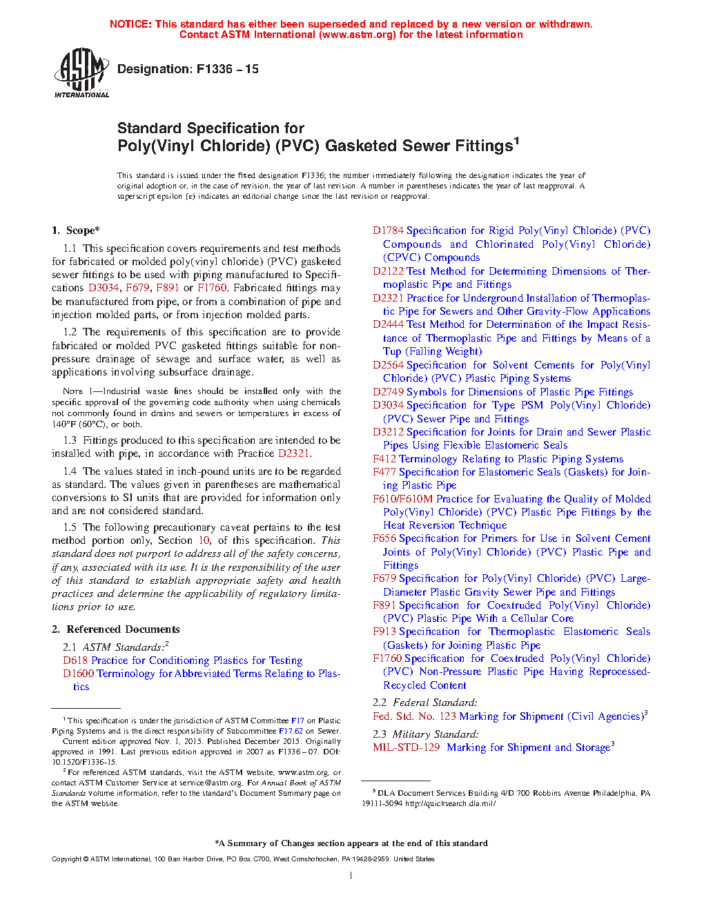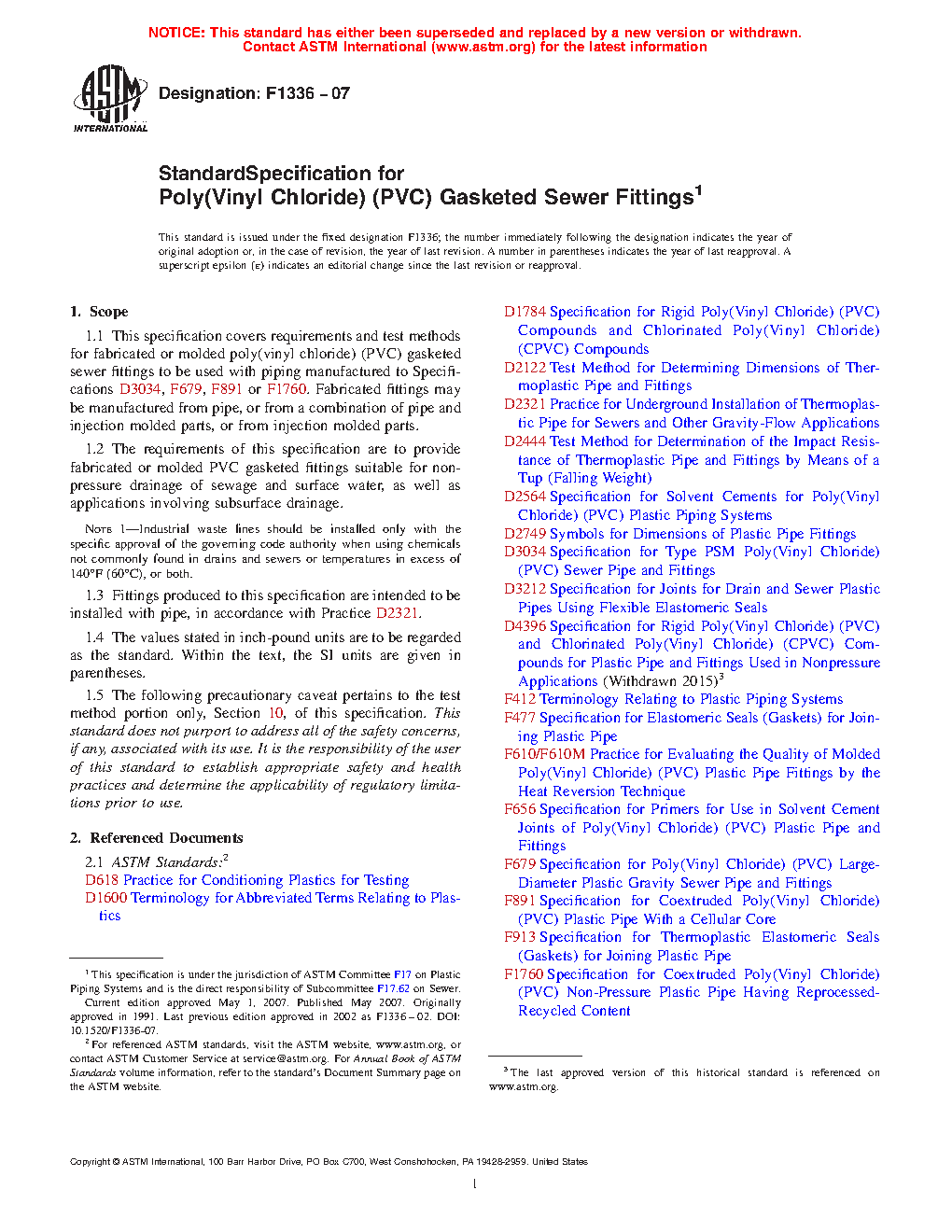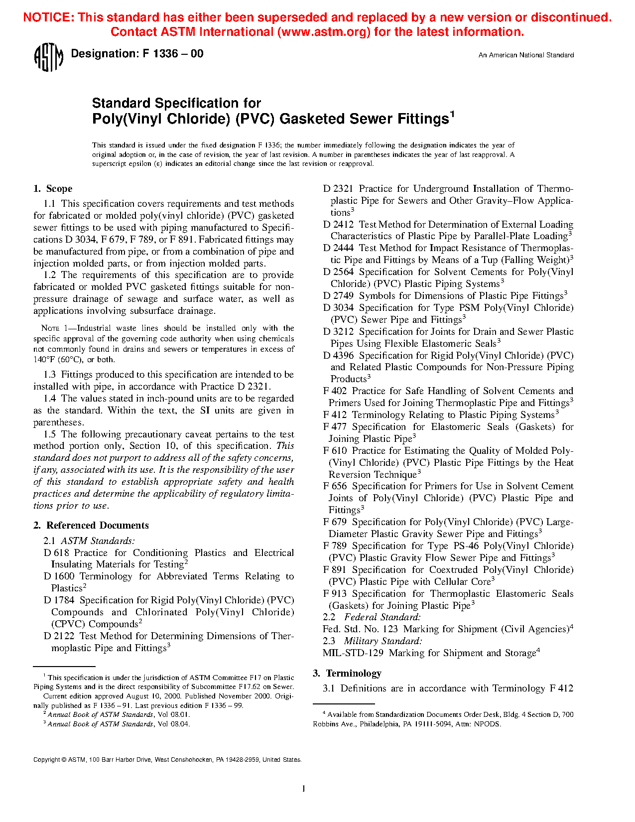1.3 Fittings produced to this specification are intended to be installed with pipe, in accordance with Practice D 2321.