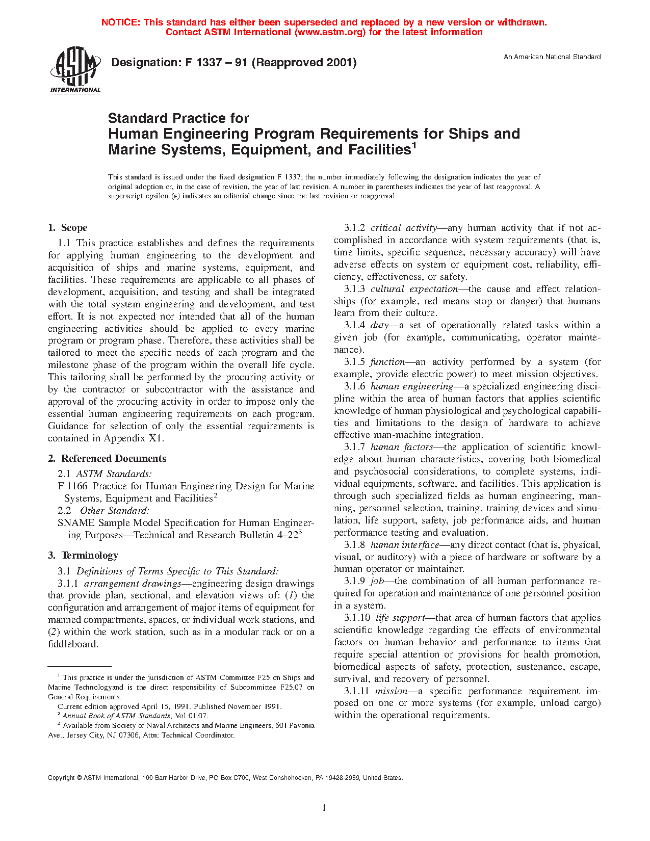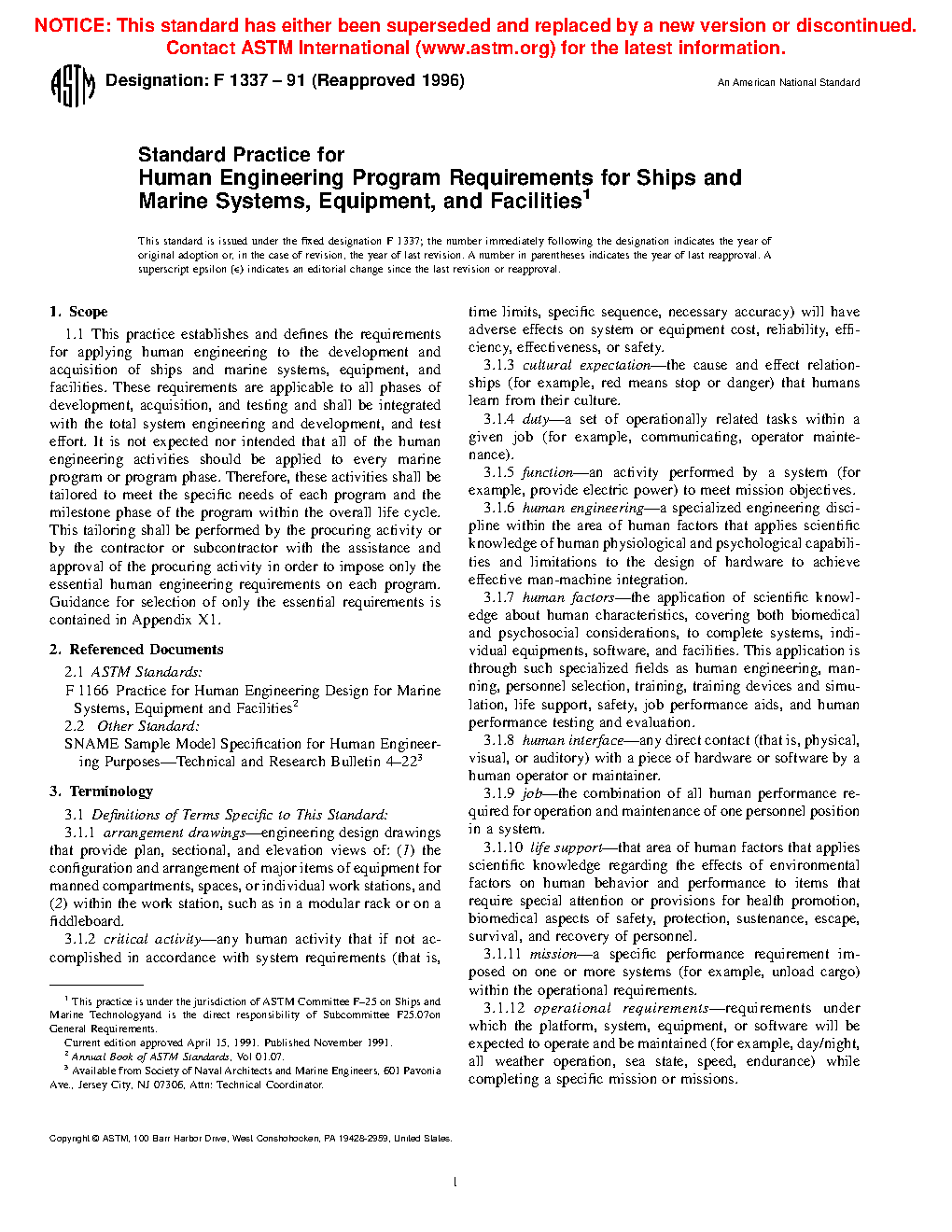 Standard Practice for Human Systems Integration Program Requirements for Ships and Marine Systems, Equipment, and Facilities