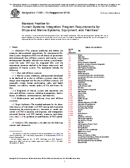 6.1 Intended Use—Compliance with this practice provides the procuring organization with assurance that human users will be efficient, effective, and safe in the operation and maintenance of marine systems, equipment, and facilities. Specifically, it is intended to ensure the following: