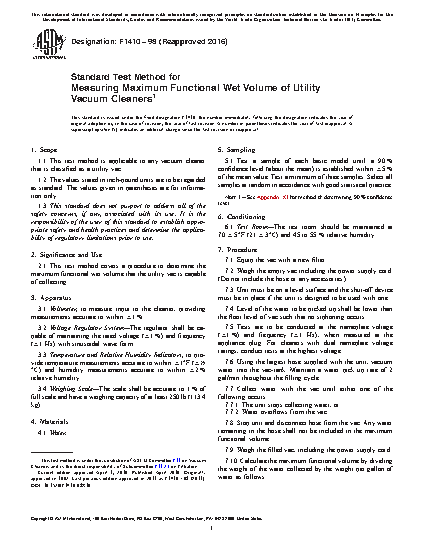 2.1 This test method covers a procedure to determine the maximum functional wet volume that the utility vac is capable of collecting.