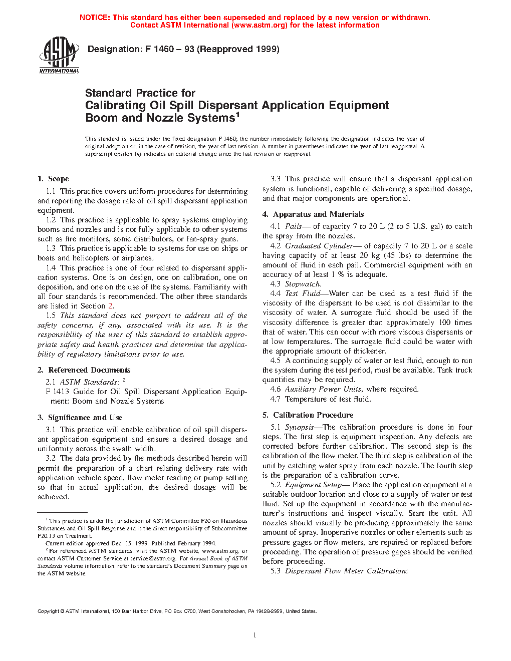 1.4 This practice is one of four related to dispersant application systems. One is on design, one on calibration, one on deposition, and one on the use of the systems. Familiarity with all four standards is recommended. The other three standards are listed in Section 2.
