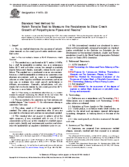 1.1 This test method determines the resistance of polyethylene materials to slow crack growth under conditions specified within.