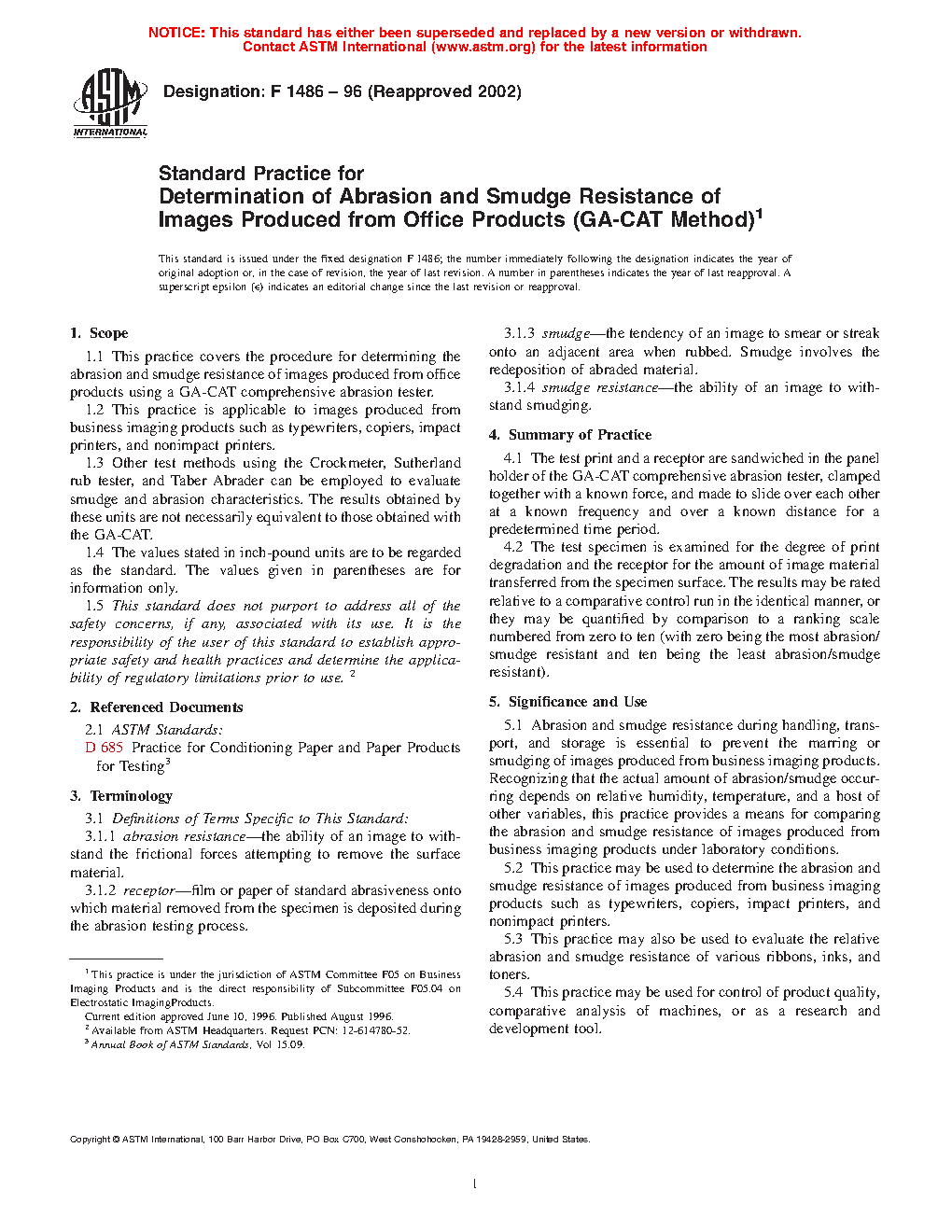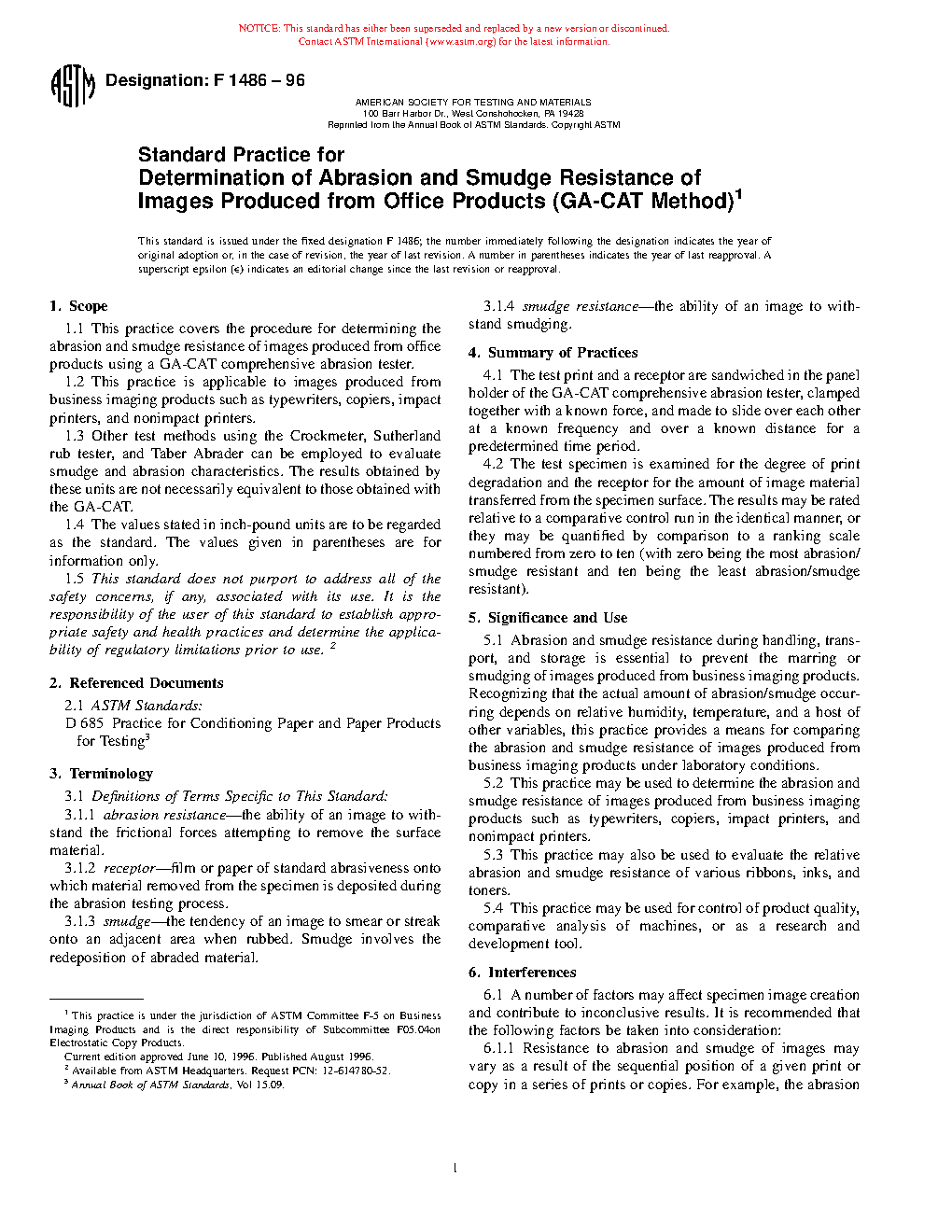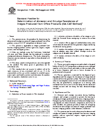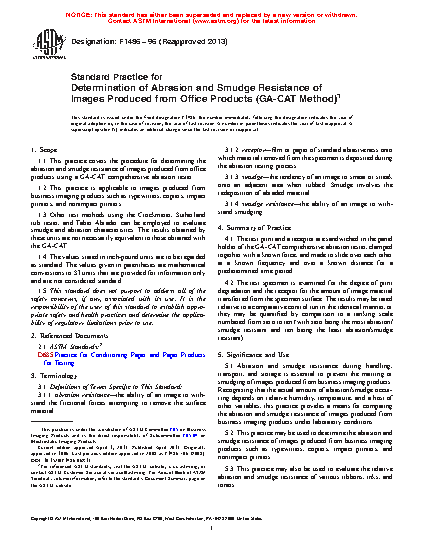 This practice may be used to determine the abrasion and smudge resistance of images produced from business imaging products such as typewriters, copiers, impact printers, and nonimpact printers.