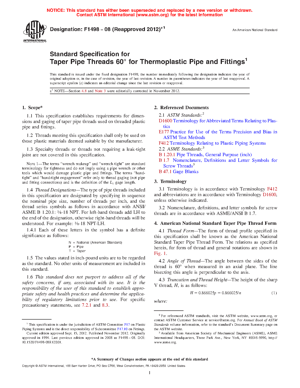 1.3 Specialty threads or threads not requiring a leak-tight joint are not covered in this specification.