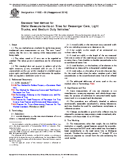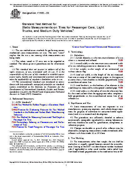 1.1 This test method covers methods for performing certain mechanical static measurements on tires. The term “static” implies that the tire is not rotating while measurements are being made.