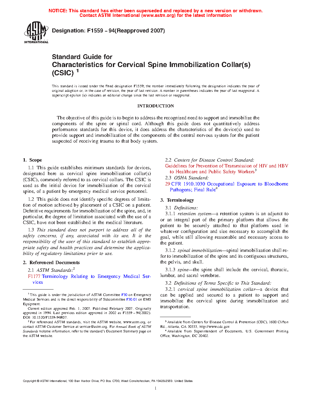 1.2 This guide does not identify specific degrees of limitation of motion achieved by placement of a CSIC on a patient. Definitive requirements for immobilization of the spine, and, in particular, the degree of limitation associated with the use of a CSIC, have not been established in the medical literature.