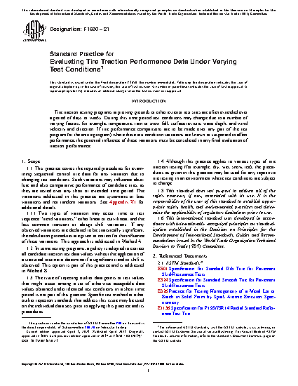 1.4 Although this practice applies to various types of tire traction testing (for example, dry, wet, snow, ice), the procedures as given in this practice may be used for any repetitive tire testing in an environment where test conditions are subject to change.