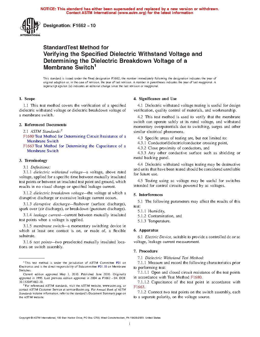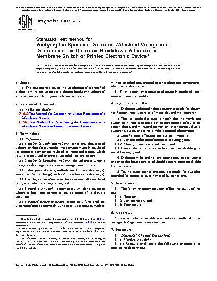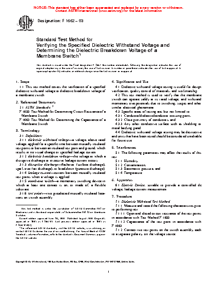 1.1 This test method covers the verification of a specified dielectric withstand voltage of a membrane switch.