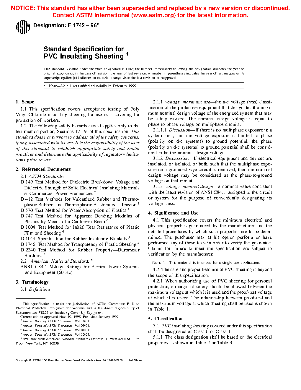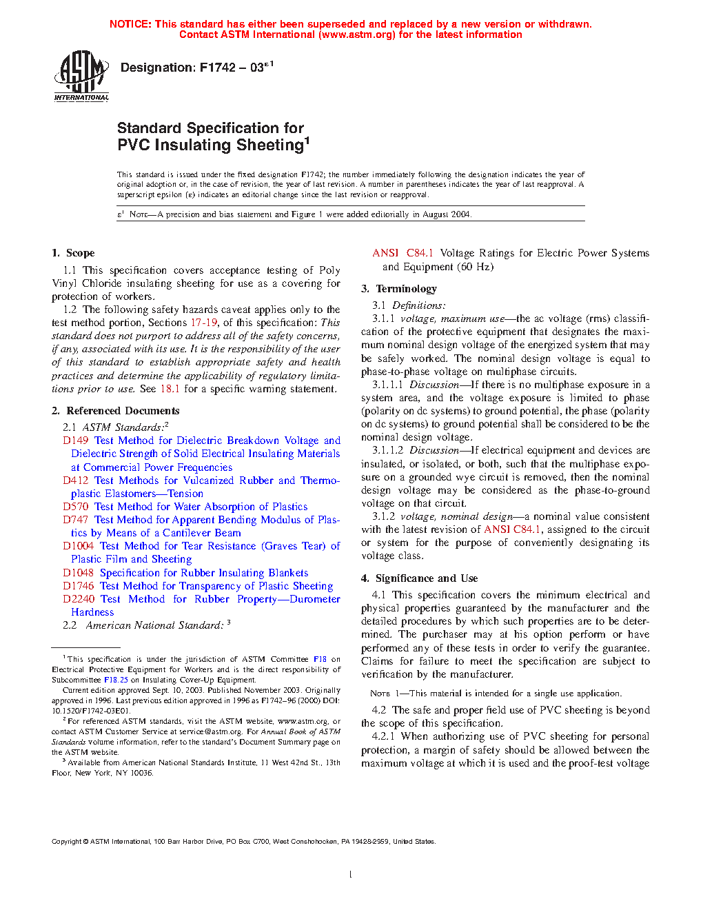 1.1 This specification covers acceptance testing of Poly Vinyl Chloride insulating sheeting for use as a covering for protection of workers.
