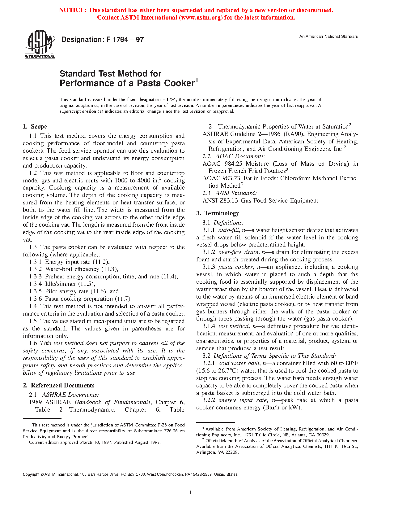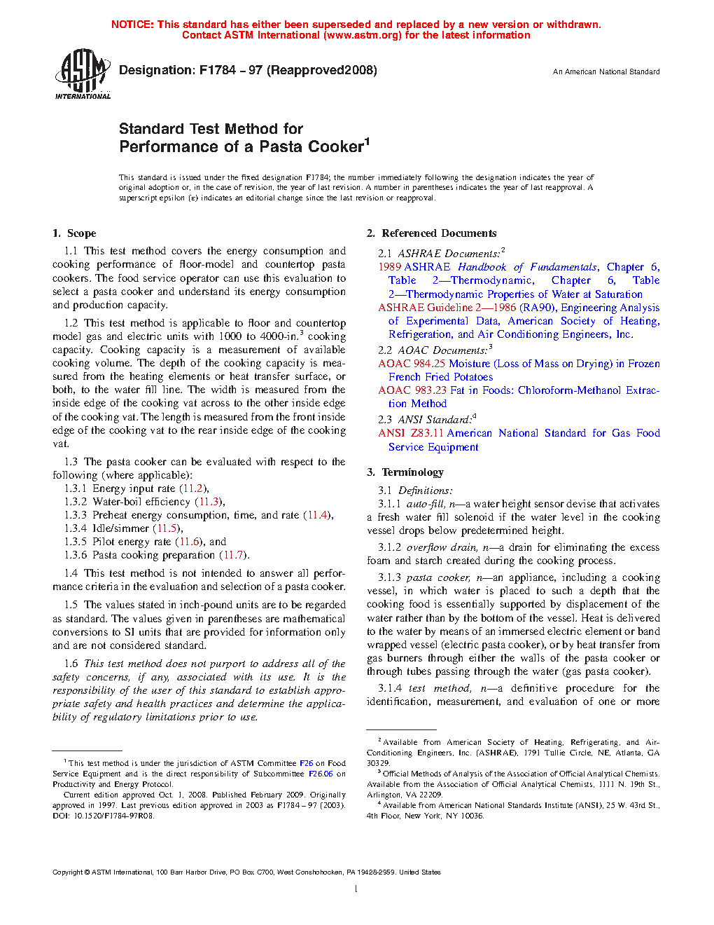 1.4 This test method is not intended to answer all performance criteria in the evaluation and selection of a pasta cooker.