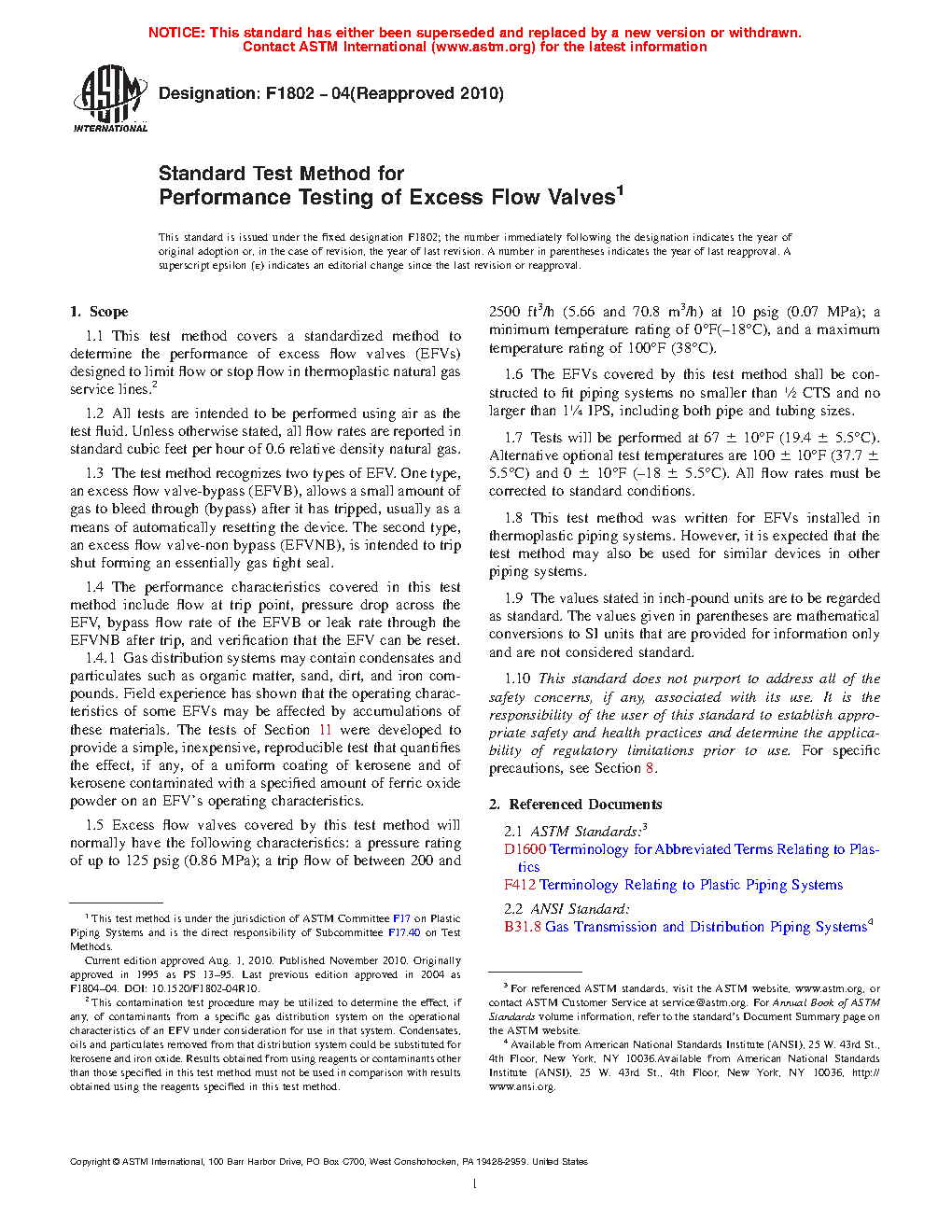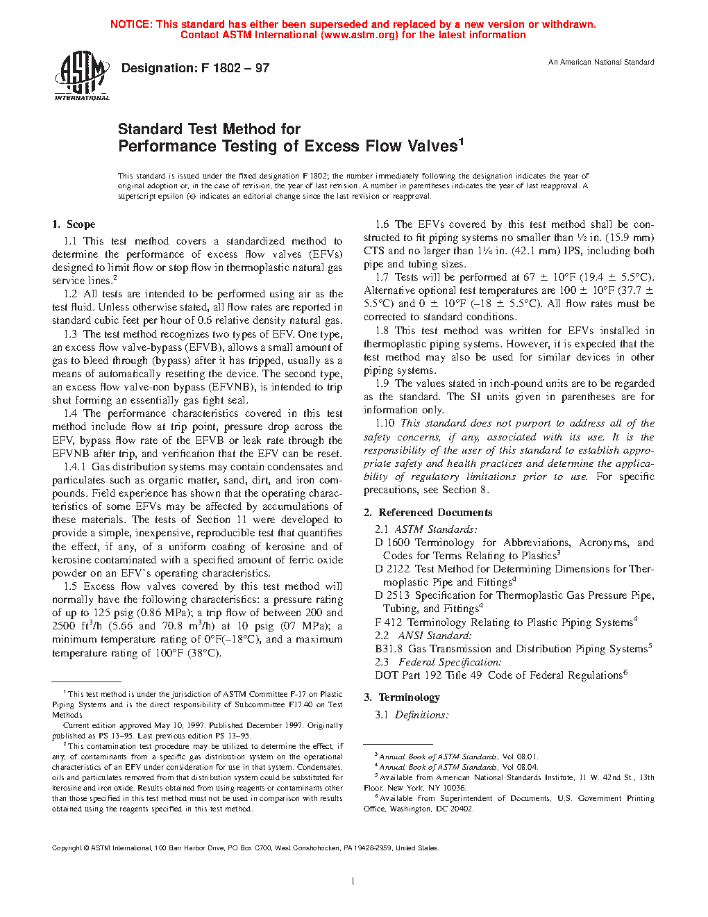1.8 This test method was written for EFVs installed in thermoplastic piping systems. However, it is expected that the test method may also be used for similar devices in other piping systems.