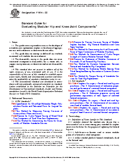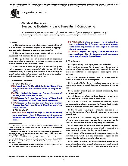 Standard Guide for Evaluating Modular Hip and Knee Joint Components