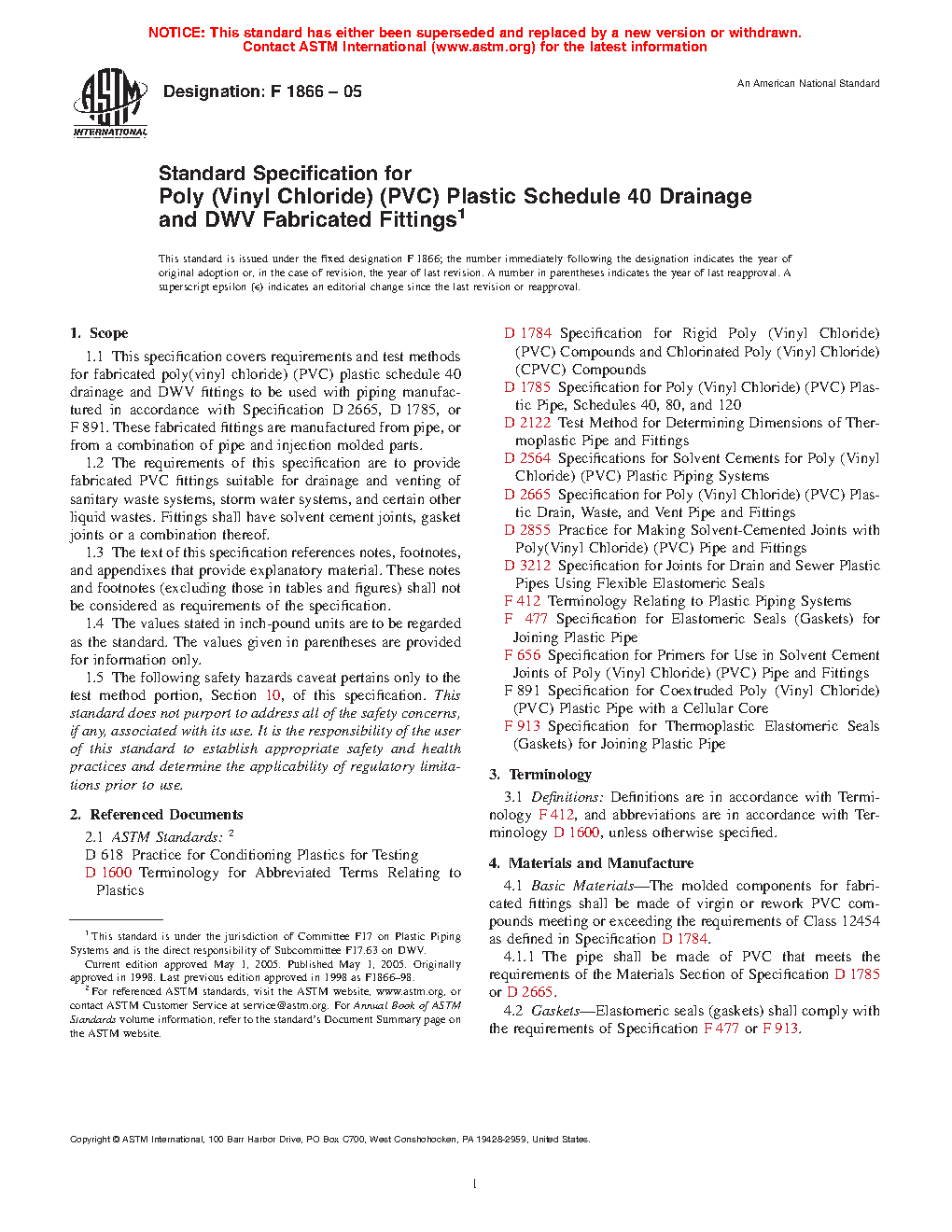 1.2 The requirements of this specification are to provide fabricated PVC fittings suitable for drainage and venting of sanitary waste systems, storm water systems, and certain other liquid wastes.