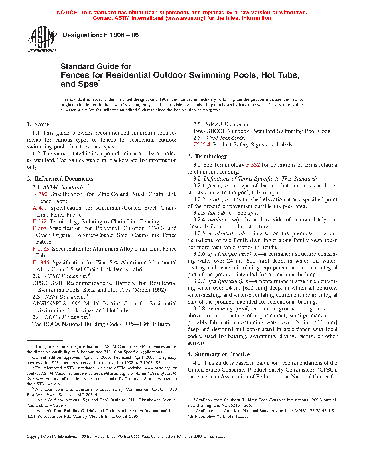 1.1 This guide provides recommended minimum requirements for various types of fences for residential outdoor swimming pools, hot tube, and spas.