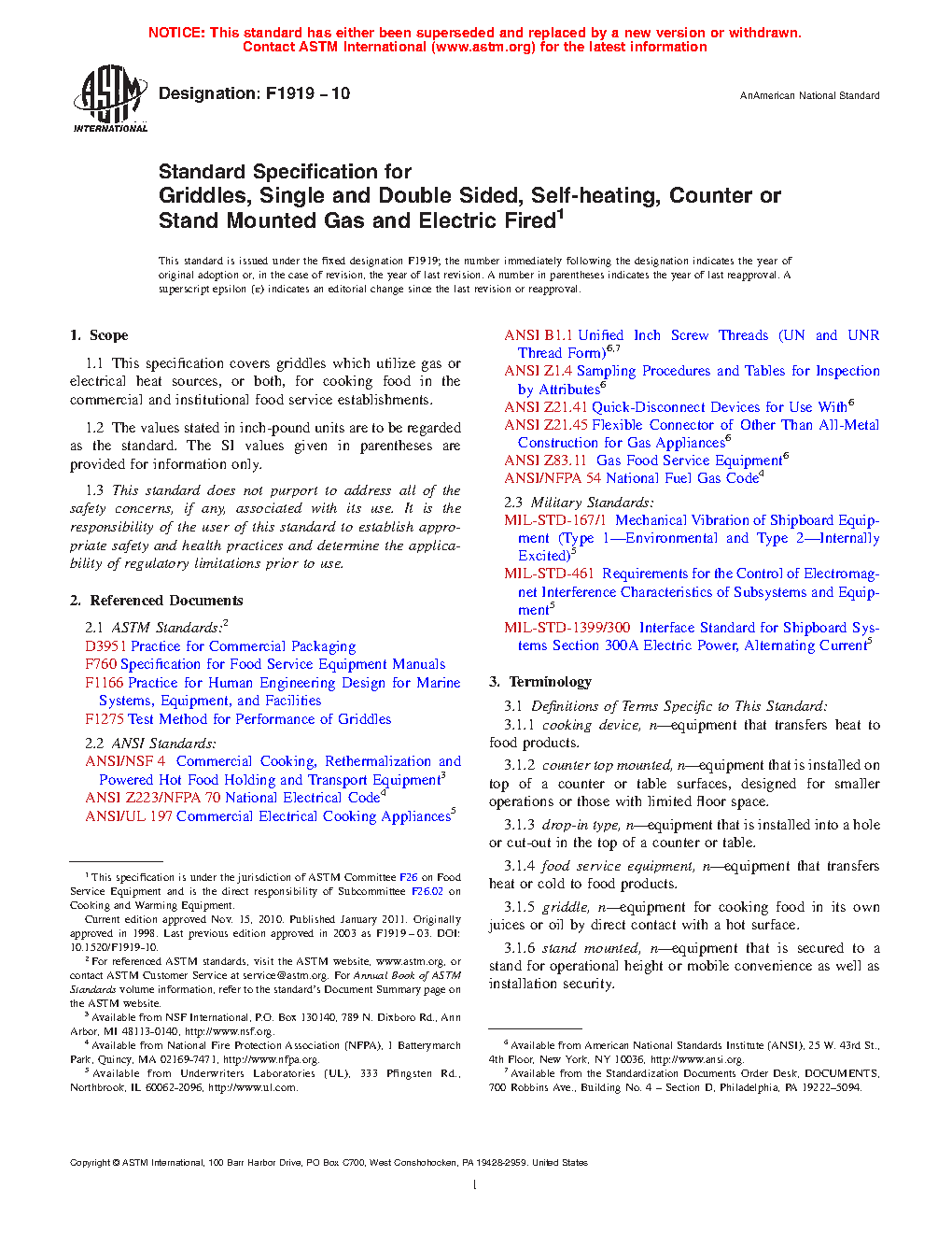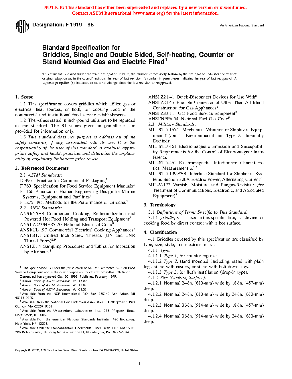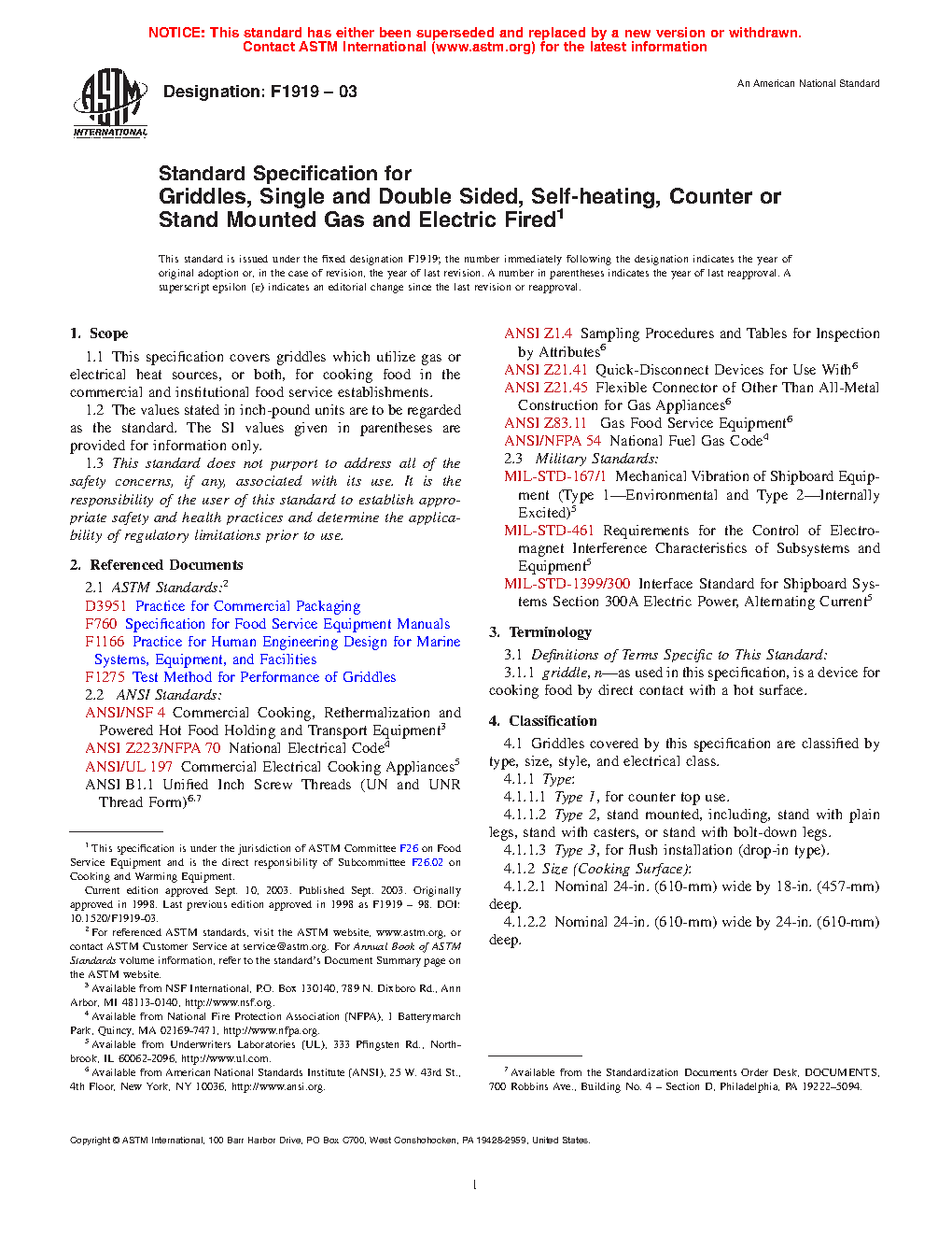 1.1 This specification covers griddles which utilize gas or electrical heat sources, or both, for cooking food in the commercial and institutional food service establishments.