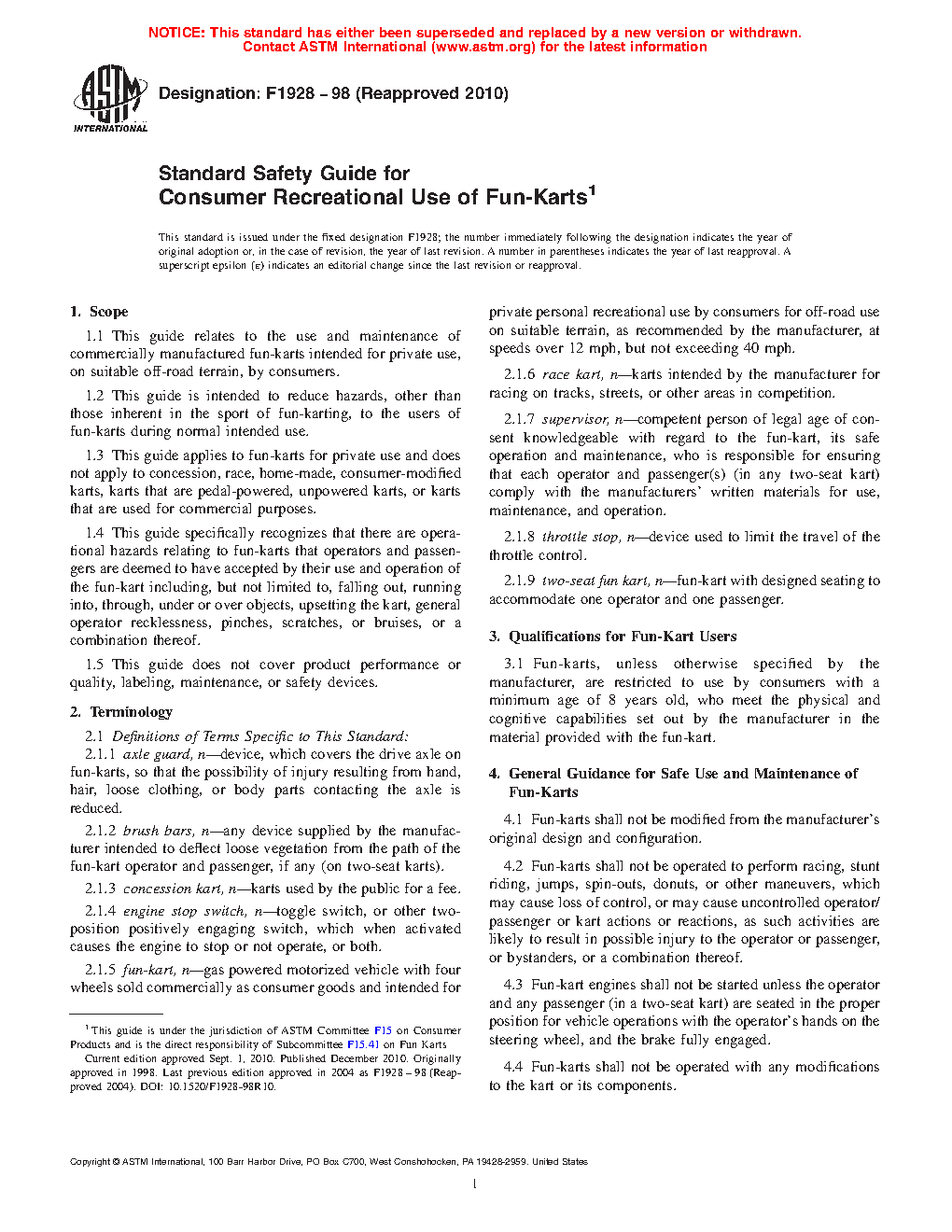 1.2 This guide is intended to reduce hazards, other than those inherent in the sport of fun-karting, to the users of fun-karts during normal intended use.