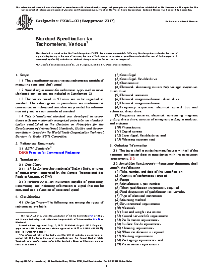 1.1 This specification covers various tachometers capable of measuring rotational shaft speed.