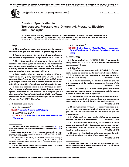 1.1 This specification covers the requirements for pressure and differential pressure transducers for general applications.
