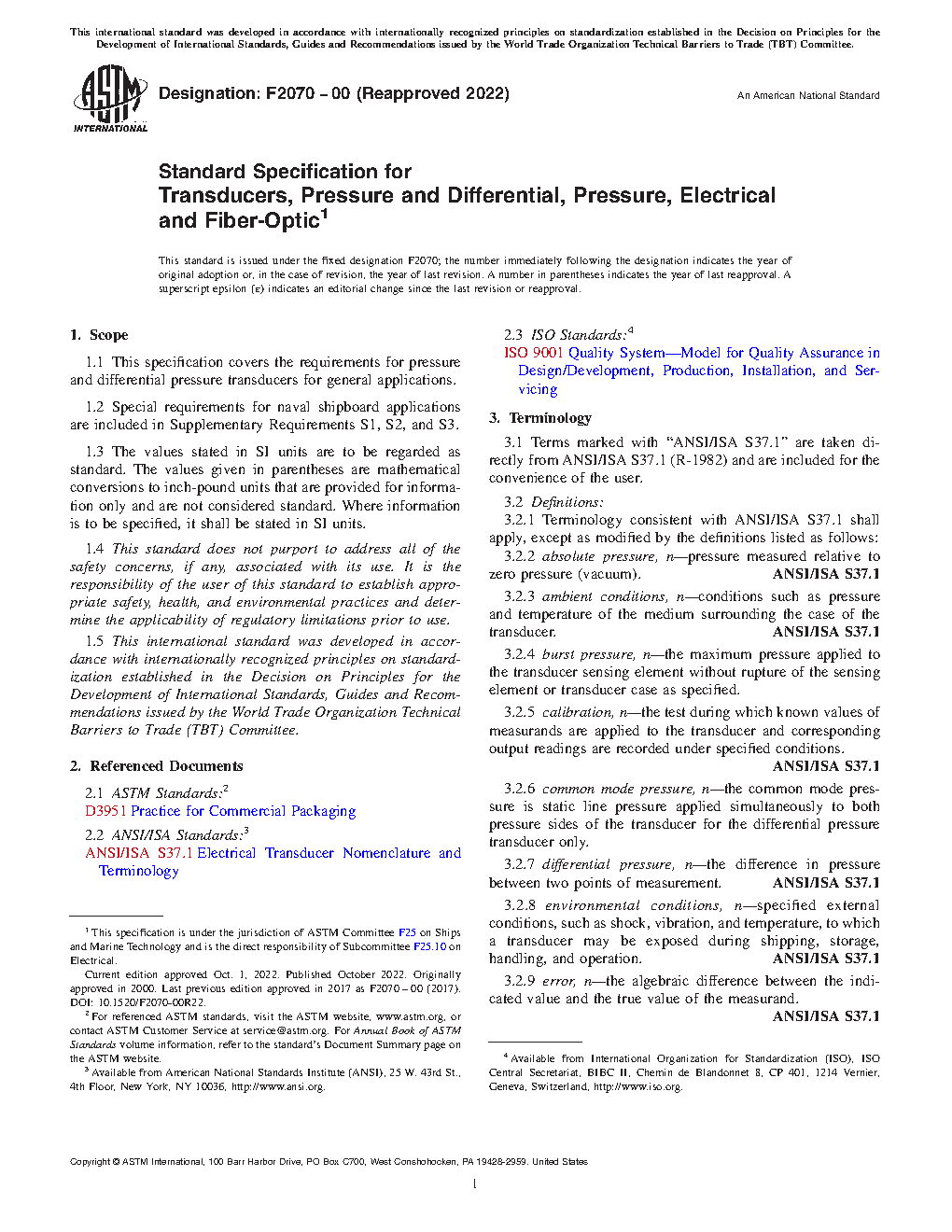 1.1 This specification covers the requirements for pressure and differential pressure transducers for general applications.