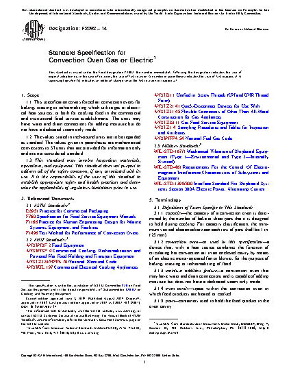 1.1 This specification covers forced air convection ovens for baking, roasting or rethermalizing which utilize gas or electrical heat sources, or both for cooking food in the commercial and institutional food service establishments. The units may have water and drain connections for adding moisture but do not have a dedicated steam only mode.
