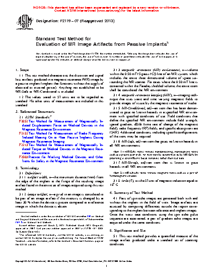 Standard Test Method for Evaluation of MR Image Artifacts from Passive Implants (Withdrawn 2022)