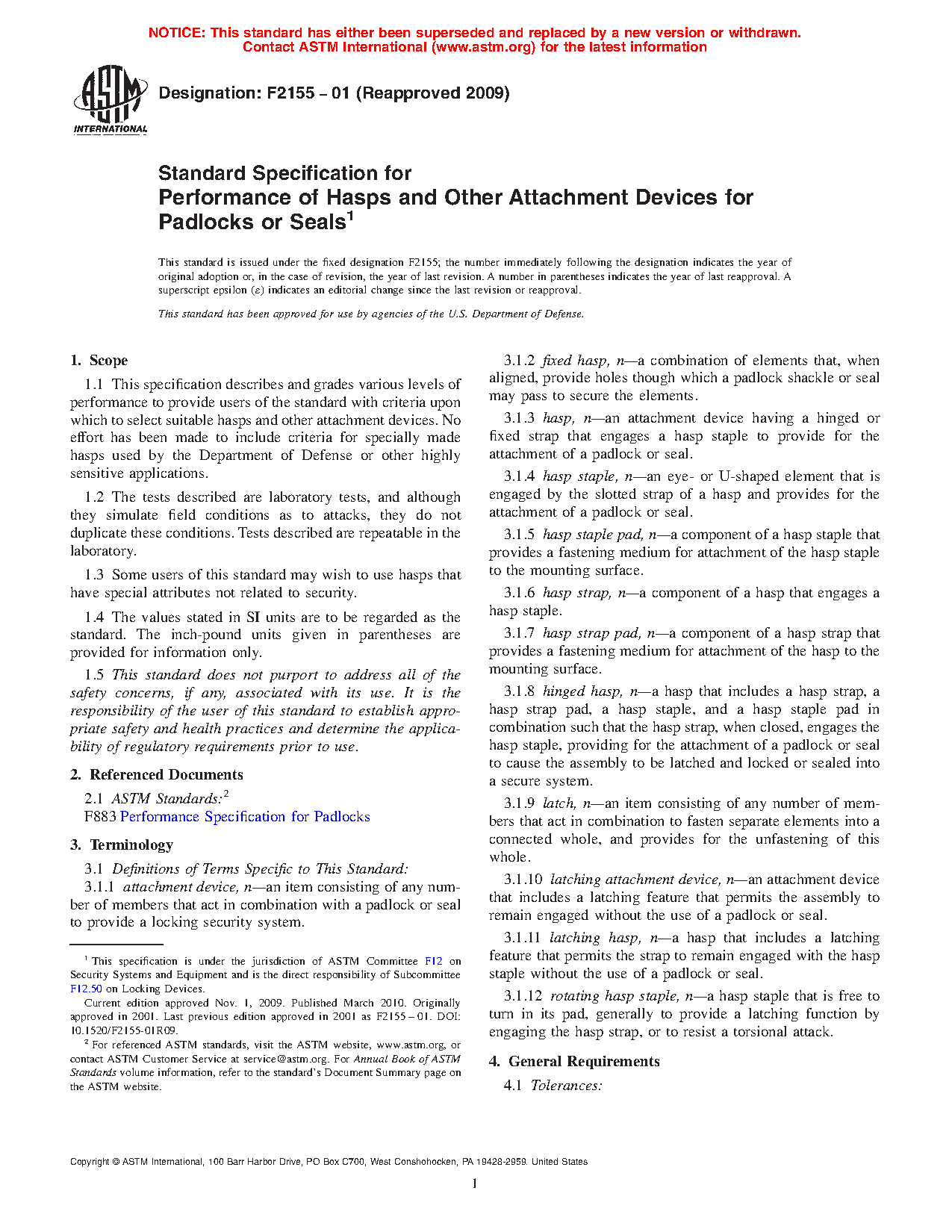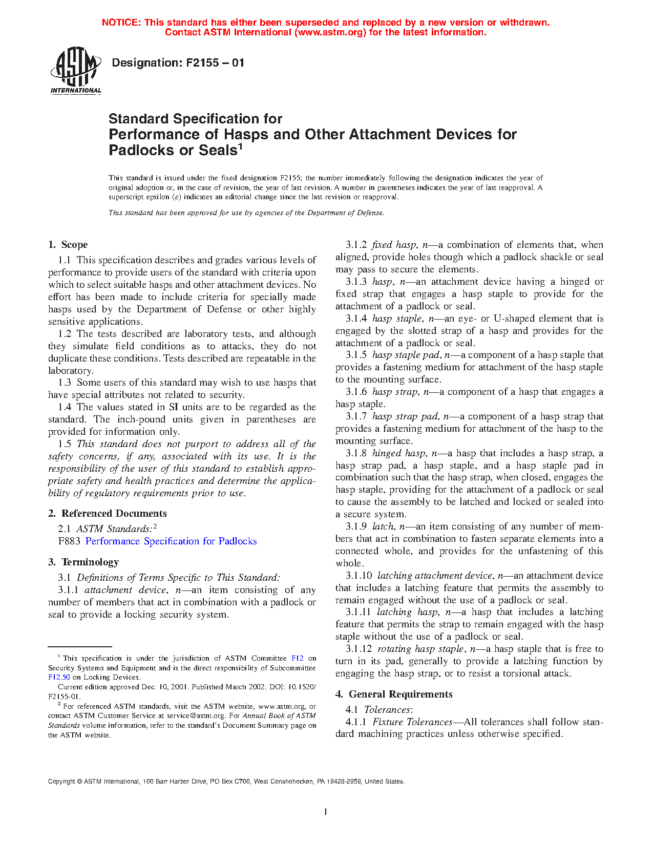 1.3 Some users of this standard may wish to use hasps that have special attributes not related to security.